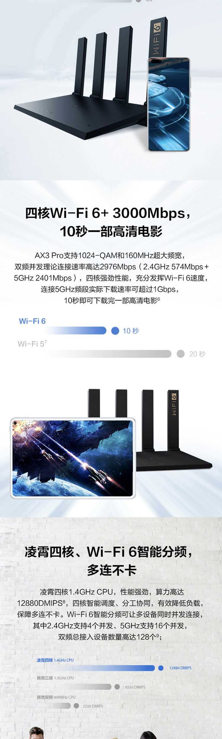 華為路由AX3 Pro 千兆路由器 無(wú)線路由器 wifi6/凌霄四核/智能分頻/多連不卡/無(wú)線家用穿墻/3000M/高速路由