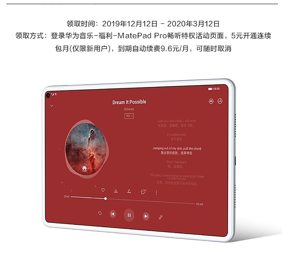 平板式微型計(jì)算機(jī) 華為 MatePad Pro 10.8英寸 6G+128G WiFi版 貝母白