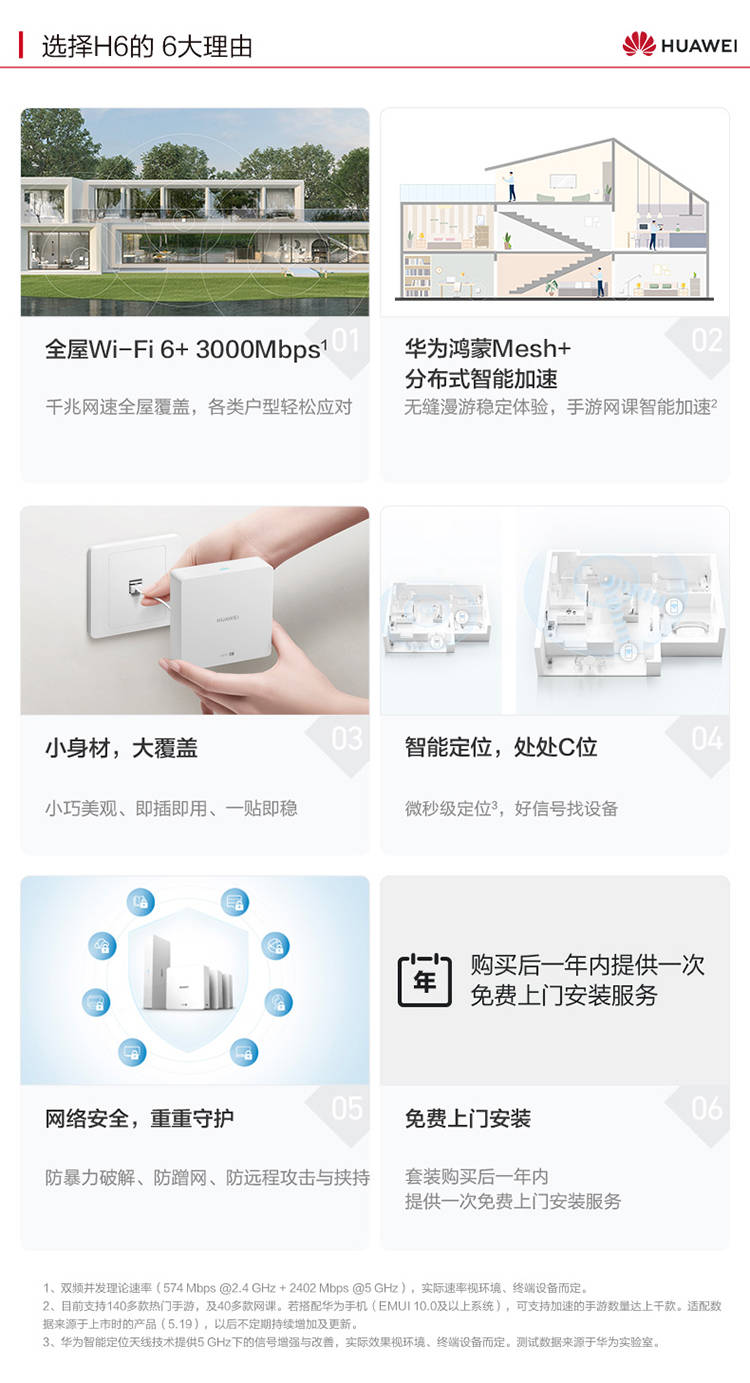 華為 H6 路由器 (1母3子套裝)分布式路由 專(zhuān)為大戶型設(shè)計(jì) 全屋Wi-Fi6+