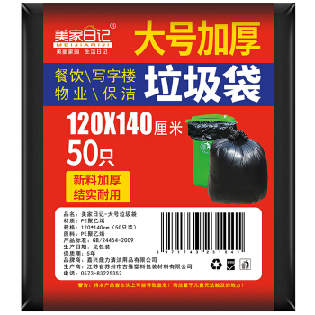 美家日記 大號垃圾袋 加厚黑色垃圾袋 商用環(huán)衛(wèi)環(huán)保垃圾袋 家用曬被袋 物業(yè)平口收納袋 120*140/50只裝
