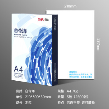 得力(deli)白令海 A4 70g 雙面打印紙 高性價(jià)比復(fù)印紙 草稿紙 500張/包 5包1箱(整箱2500張)