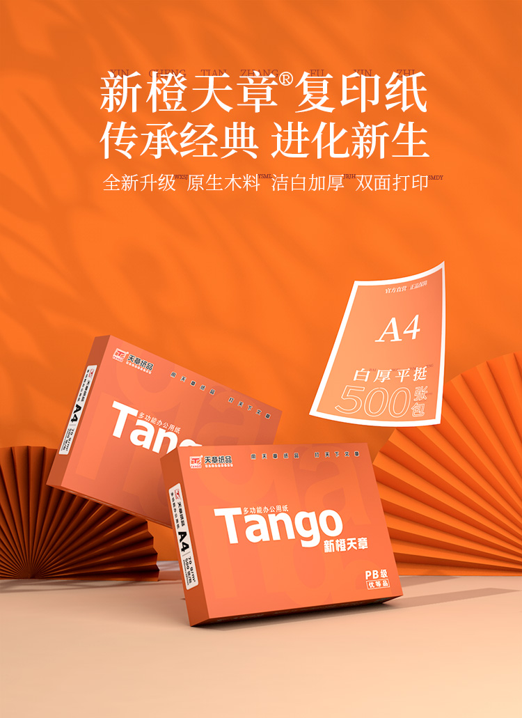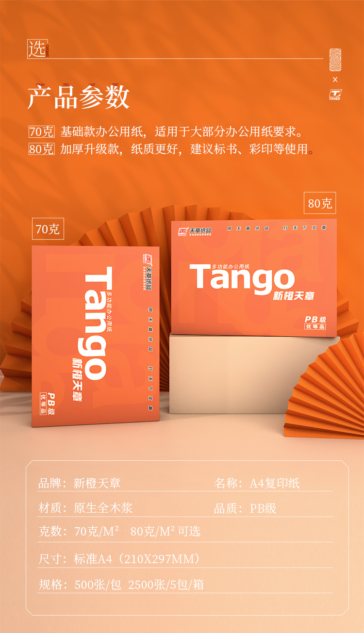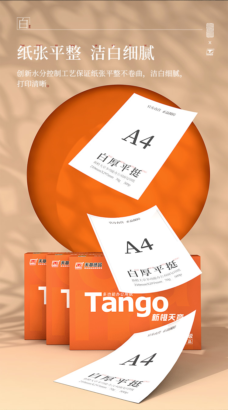天章 TANGO 新橙天章 A4紙 70g 中檔品質(zhì)款A(yù)4打印紙 高性價(jià)比復(fù)印紙 批量雙面打印 500張/包 5包/箱 2500張