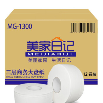 美家日記 卷紙 商用大盤(pán)紙 衛(wèi)生紙廁紙 3層600克/12卷 木漿酒店衛(wèi)生間商用卷筒紙 MG-1300
