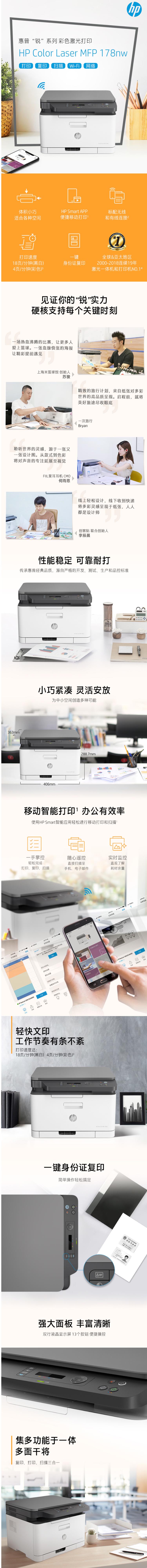 惠普 178nw 多功能一體機 406*363*288.7mm 復印、打印、掃描三合一 支持彩色打印功能