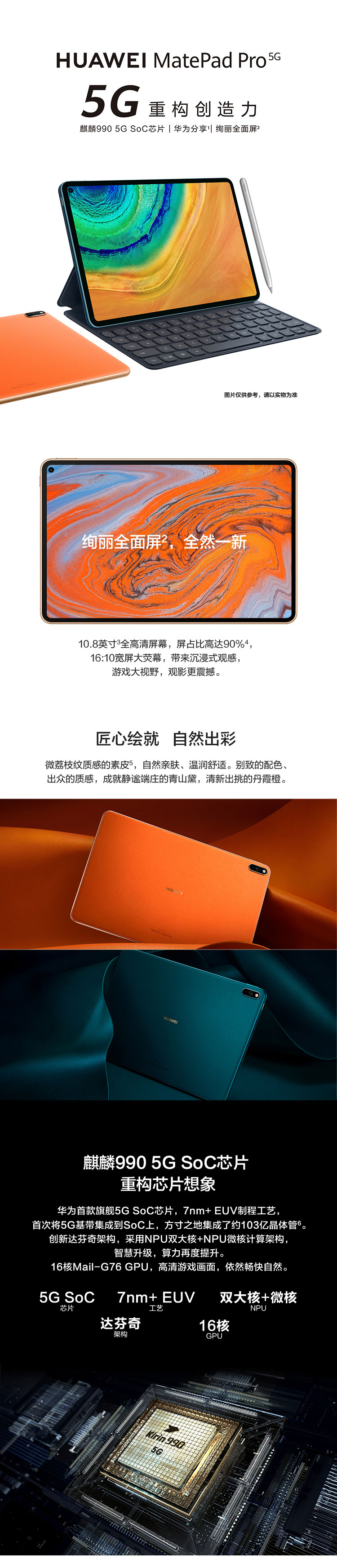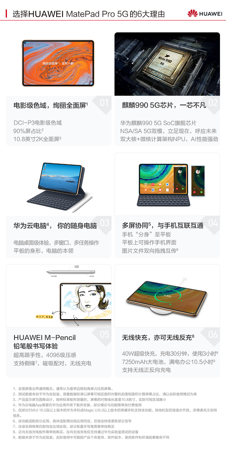 華為平板 MatePad Pro 10.8英寸麒麟990 辦公學習全面屏平板電腦8G+256G全網(wǎng)通