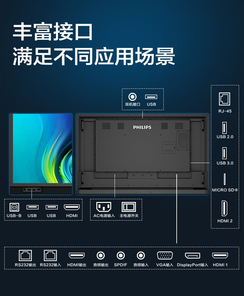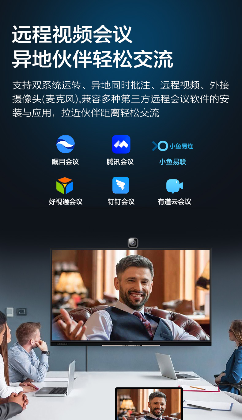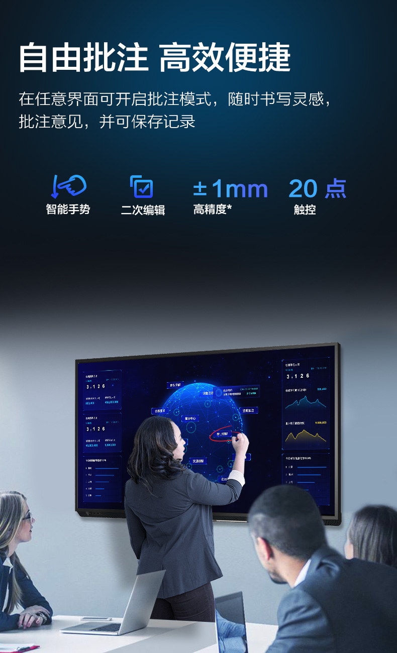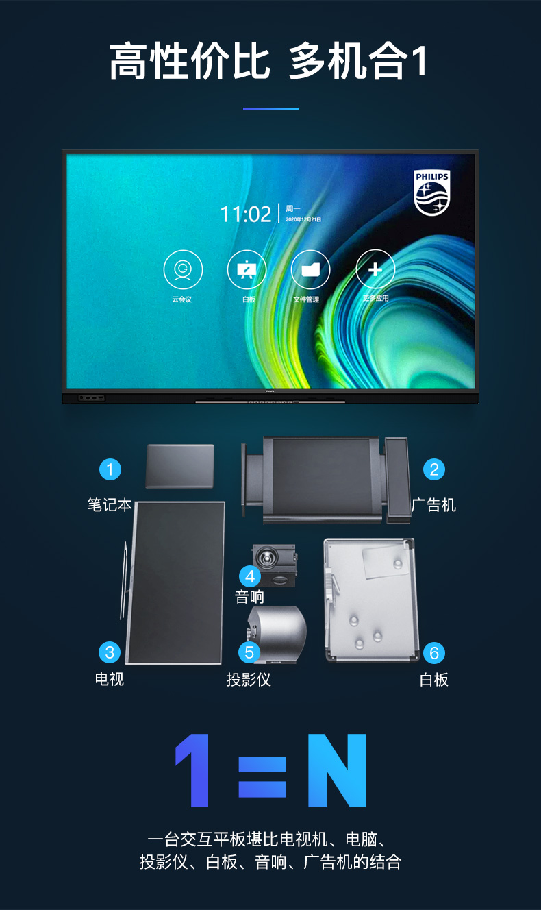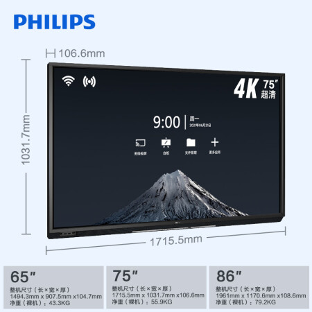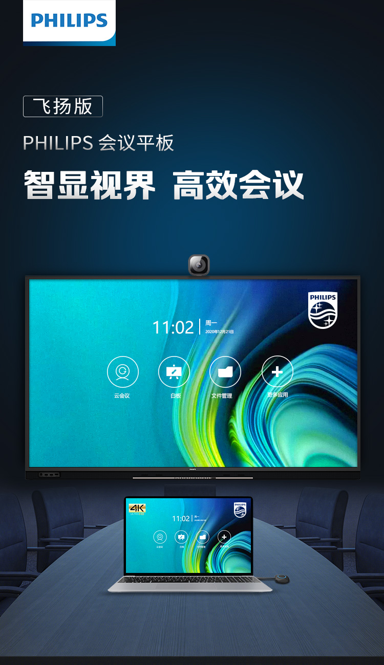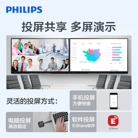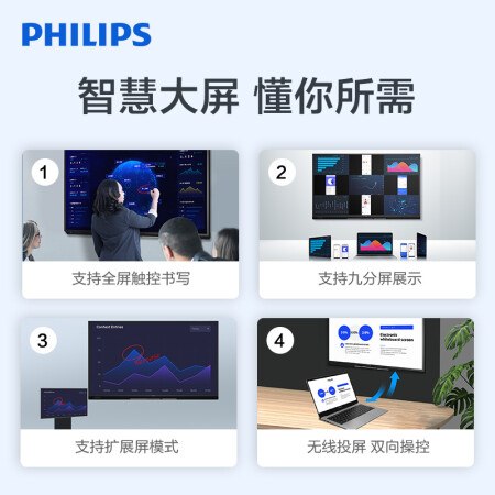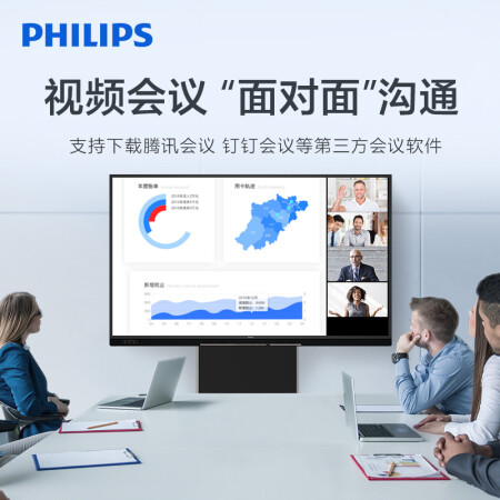 飛利浦智能會議平板 飛揚版75英寸視頻會議一體機 4K觸摸屏電子白板 商用會議電視顯示器智慧屏 3352T支架版