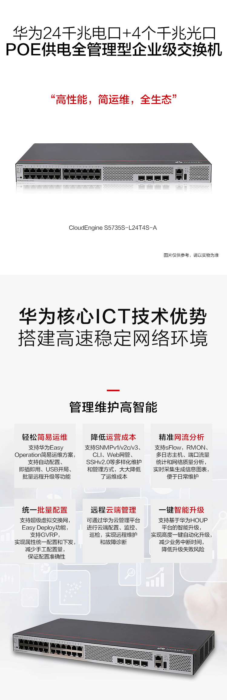 華為HUAWEI S5735S-L24T4S-A 以太網交換機 企業(yè)級交換機24口全千兆以太網+4千兆光口網絡管理網管核心三層辦公組網
