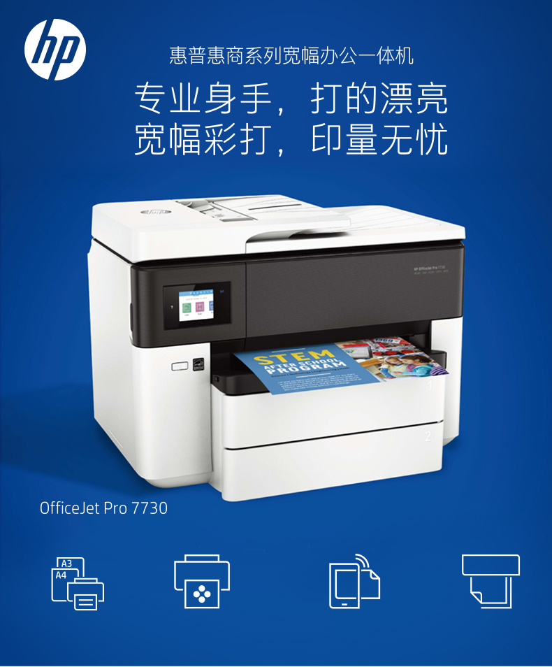 惠普(HP)OJ 7730 無線四合一多功能一體機 惠商寬幅系列 無線,打印,傳真,掃描,復?。?740簡配版)